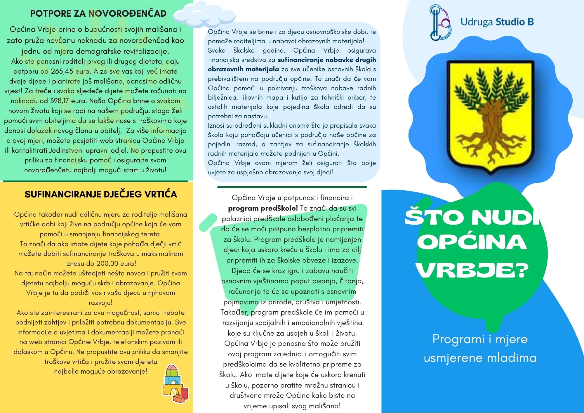 Iz Općine ističu i kako su u proteklih godinu dana proveli projekt „Zajedno za žene II“, financiran kroz Poziv Zaželi – program zapošljavanja žena – faza III. Bio je to nastavak uspješno provedenog projekta u fazi II. Osluškujući potrebe zajednice, te kroz provedbu vrednovanja prvog projekta, zaključili su kako postoji potreba za povećanjem broja zaposlenih žena i krajnjih korisnica i korisnika, stoga su kroz ovaj projekt zaposlili 15 žena te uslugom pomoći u kući koja je trajala 6 mjeseci obuhvatili ukupno 94 krajnja korisnika i korisnice iz gotovo svih naselja općine – Bodovaljaca, Vrbja, Sičica, Doline, Mačkovca i Visoke Grede. Također, bili su partneri Crvenom Križu Nova Gradiška u provedbi projekta financiranog kroz Program Zaželi kojim je zaposleno još 7 žena i obuhvaćeno 42 korisnika. Općina je partner u još nekoliko društvenih projekata koje provode OCD-i s područja općine i šire, od čega naglašavaju provedbu projekta „RU:TOPIA – razvoj zajednice po mjeri mladih“ putem kojeg je izrađen prvi Akcijski plan za mlade Općine Vrbje, odnosno lokalna javna politika usmjerena kreiranju mjera s ciljem poboljšanja kvalitete života mladih, a koji je dobio svoj nastavak i u 2023. godini što pokazuje razinu kvalitete provedbe koju je prepoznao i Središnji državni ured za demografiju i mlade, koji u kontinuitetu od 2019. godine podržava provedbu ovog projekta za mlade u općini Vrbe; te projekt „Budimo zdravi – birajmo zdravlje“ koji je sa svakom aktivnošću obuhvatio veći broj korisnika_ica od onog zadanog projektom, što dokazuje važnost provedbe ovakvih aktivnosti u manjim ruralnim zajednicama kako bi se našem stanovništvu izjednačila dostupnost zdravstvene zaštite i preventivnih zdravstvenih programa. Nadalje, i u ovoj godini provode Program mjera za poticanje rješavanja stambenog pitanja usmjeren mladim obiteljima, podigli su iznos sufinanciranja troškova dječjeg vrtića, isplaćuju jednokratne porodiljne naknade, financiraju i organiziraju program predškolskog obrazovanja, te sufinanciraju nabavu radnih materijala za sve osnovnoškolce s područja općine. Nastavili su s podjelom šarana svim kućanstvima na području općine za Badnjak i Uskrs, te sufinanciranjem registracije traktora poljoprivrednicima i pomažu u nabavi ogrjeva socijalno ugroženim kućanstvima