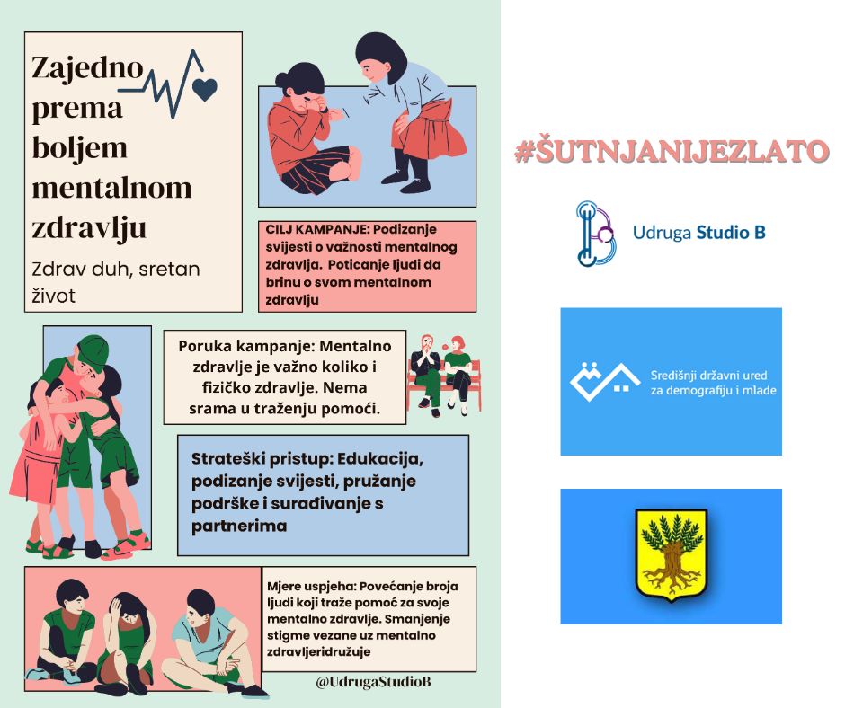 U sklopu projekta se provodi edukativna društvena kampanja „Šutnja nije zlato“ koja se provodi s ciljem destigmatizacije pitanja mentalnog zdravlja i promicanja značenja mentalnog zdravlja i njegove njege na dubljoj razini. Također, kampanjom se promiču ponašanja koja su dobra za rješavanje problema, izgradnja kvalitetnih odnosa, empatija i pozitivna slika o sebi.