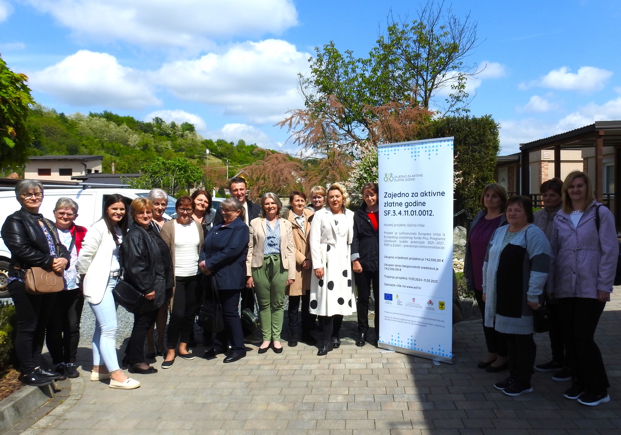 Opći cilj projekta “Zajedno za aktivne zlatne godine“ je povećanje socijalne uključenosti i prevencija institucionalizacije starijih osoba i OSI koje žive u nerazvijenim ruralnim područjima osiguravanjem dostupnosti socijalne usluge na području JLS I skupine. Specifični cilj projekta je povećanje kvalitete života 90 pripadnika_ica ciljne skupine, starijih osoba i osoba s invaliditetom, kroz osiguravanje usluge potpore i podrške u svakodnevnom životu koju će pružati 15 pružatelja_ica, te mjesečne isporuke paketa higijenskih potrepština, u trajanju od 33 mjeseca; čime ćemo doprinijeti povećanju socijalne kohezije lokalne zajednice.